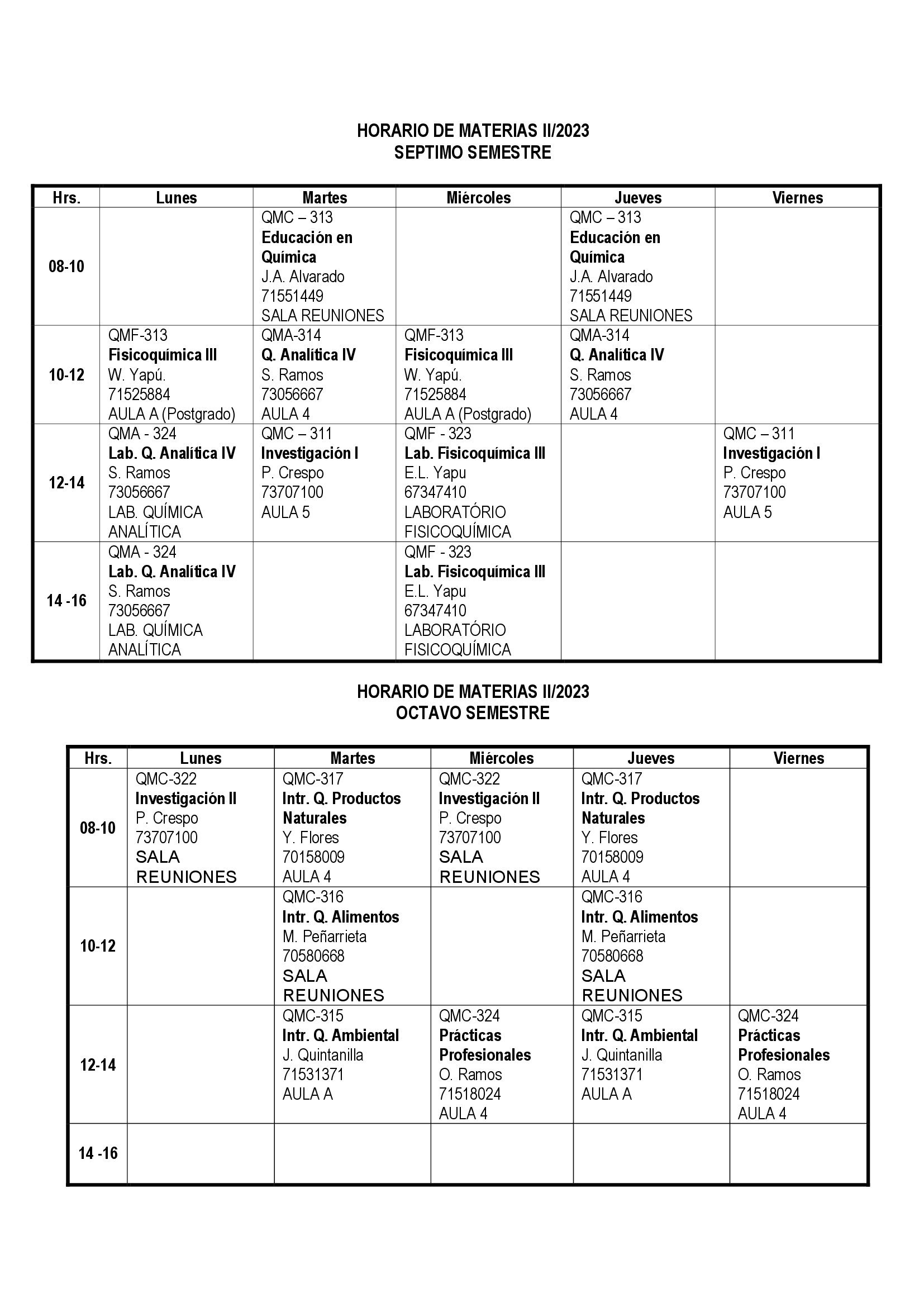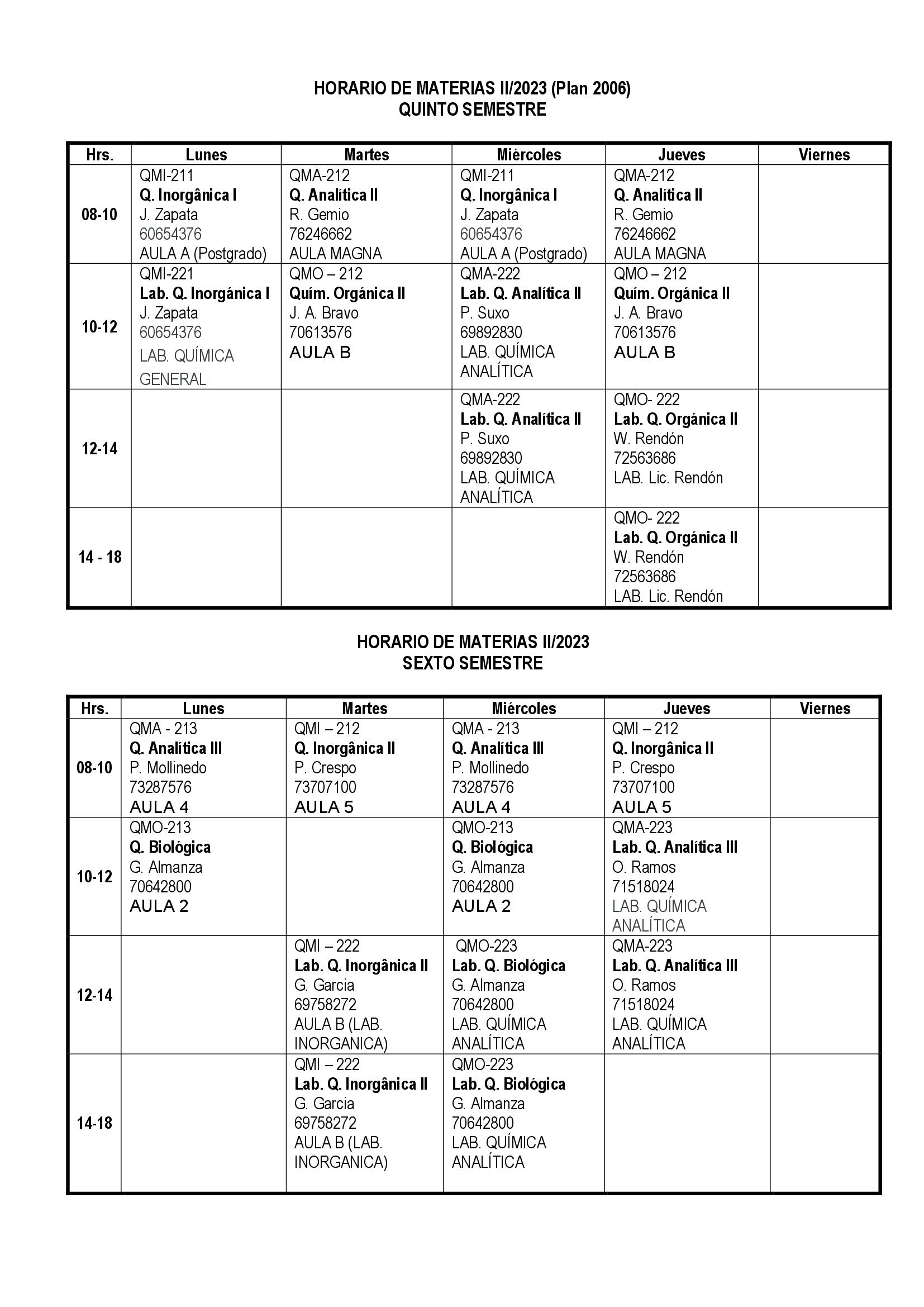 Calendario Académico (Plan 2003) - CARRERA DE CIENCIAS QUÍMICAS
