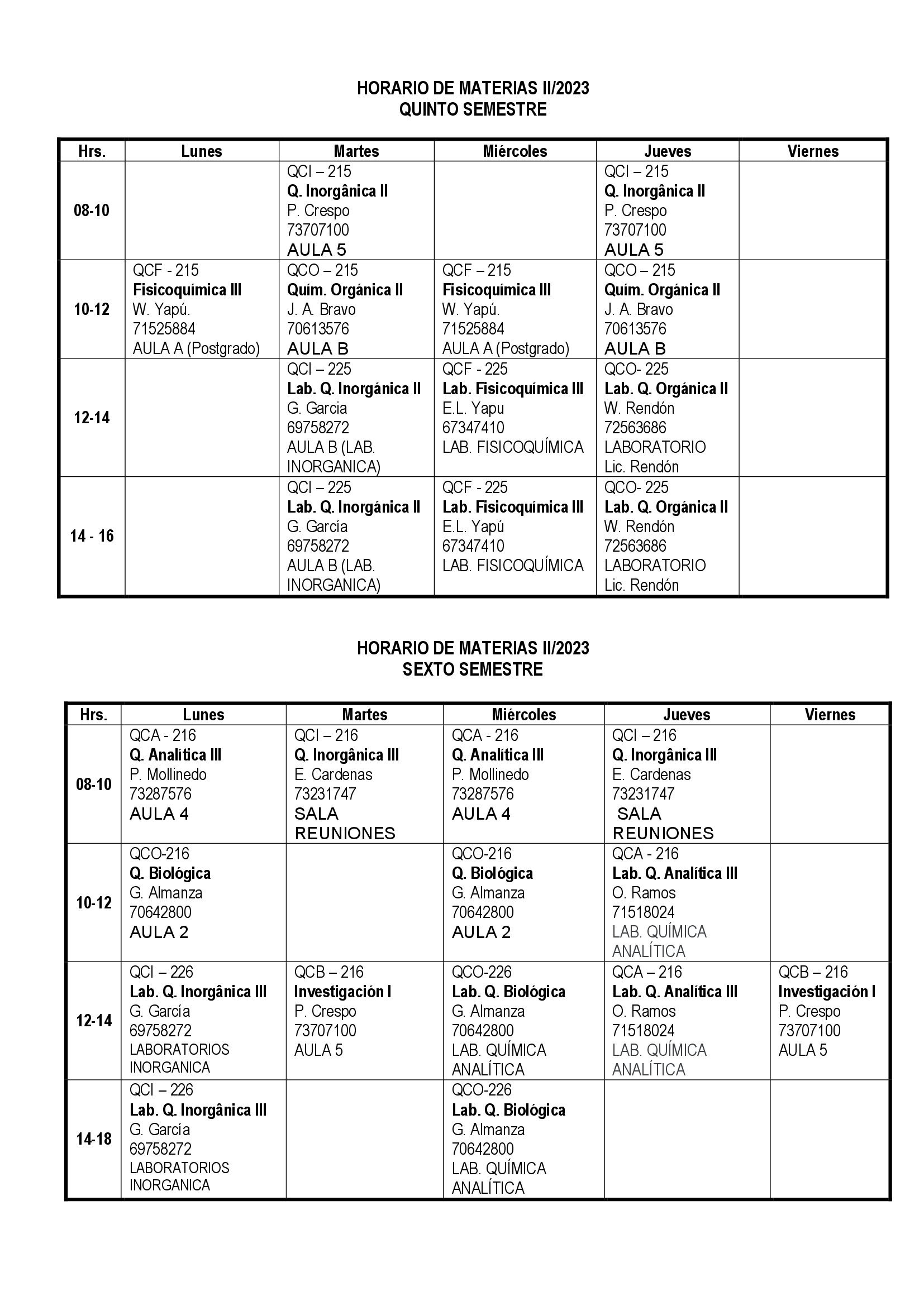 Calendario Academico (Plan 2017) - CARRERA DE CIENCIAS QUÍMICAS