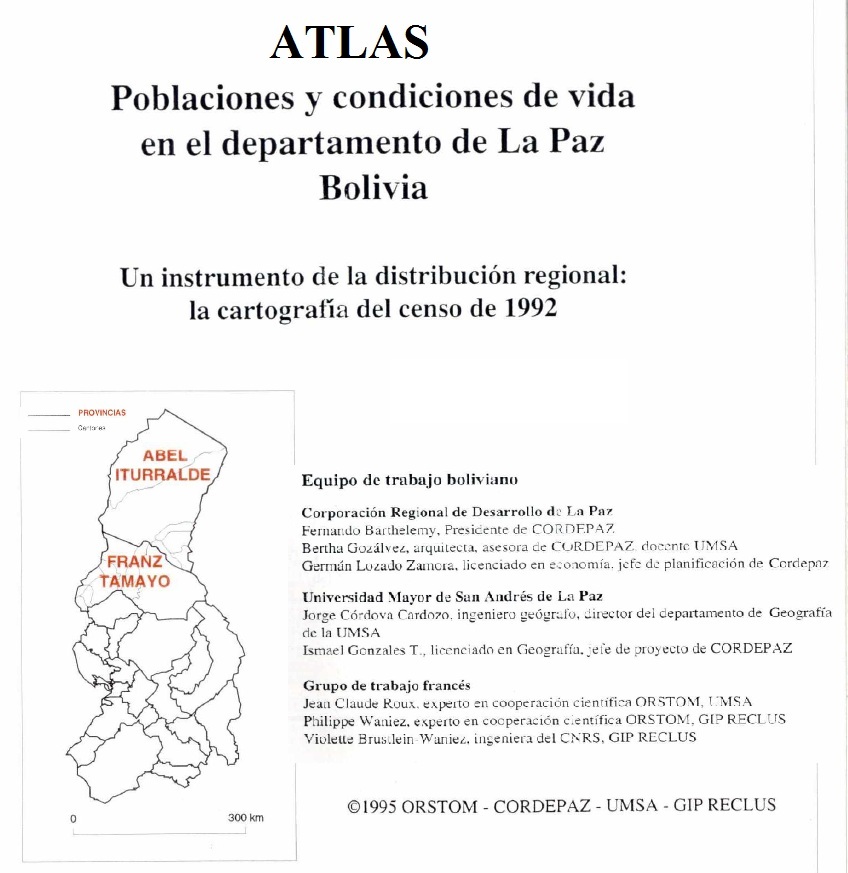 El Atlas de Poblaciones y condiciones de vida en el Departamento de La Paz (Bolivia). Un instrumento de la distribución regional: la cartografía del censo de 1992 es una obra importante trabajada por ex ORSTOM, ex CORDEPAZ, UMSA y GIP RECLUS. La obra fue publicada el año 1995 donde se describe los métodos cuantitativos para la publicación de la cartografía de los datos del Censo de 1992. La obra presenta, por primera vez, la aplicación de un friso, también denominado "corema", que representa la función espacial que cumplen las ciudades de La Paz y El Alto.