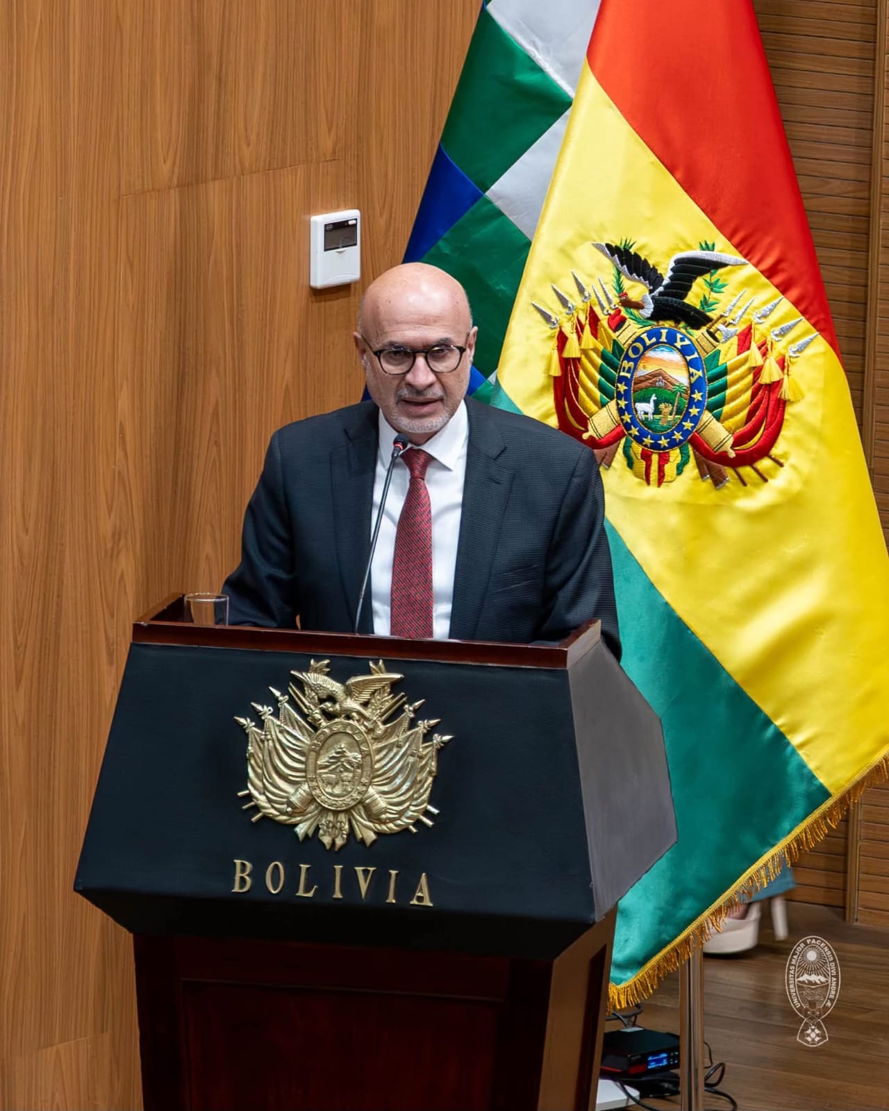 🗣️ El evento contó con la participación del Presidente Rodrigo Paz Pereira y el Ministro de la Presidencia, José Luis Lupo Flores, quienes resaltaron que una academia fortalecida es garantía de un mejor futuro. Asimismo, participaron los rectores de la USFX, UAGRM, UAJMS, UAB y UCB, reafirmando el compromiso de trabajar articuladamente por la innovación tecnológica.