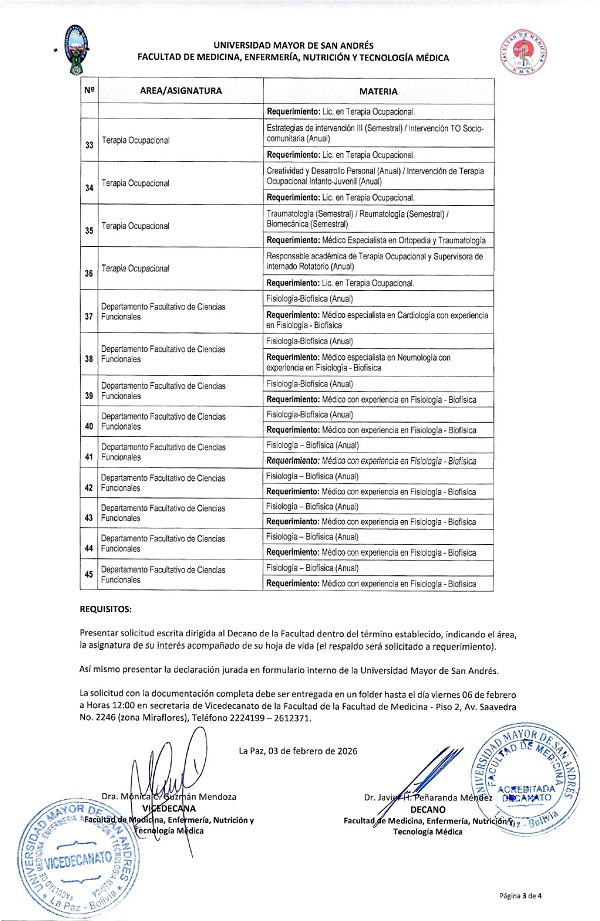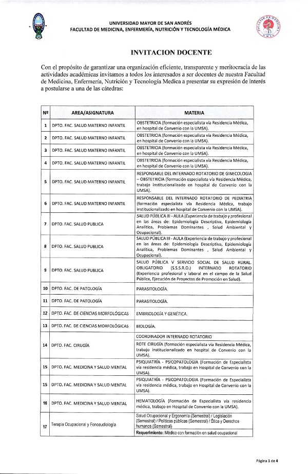 Convocatoria a Docentes Facultad de Medicina - UMSA