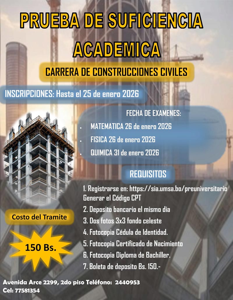 PRUEBA DE SUFICIENCIA ACADÉMICA CONSTRUCCIONES CIVILES - FT-UMSA