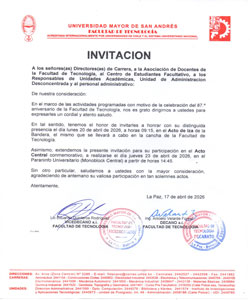 En el marco de la celebración del 87º Aniversario de la Facultad de Tecnología (1939 - 2026), se invitan a la Comunidad Facultativa a ser participes...