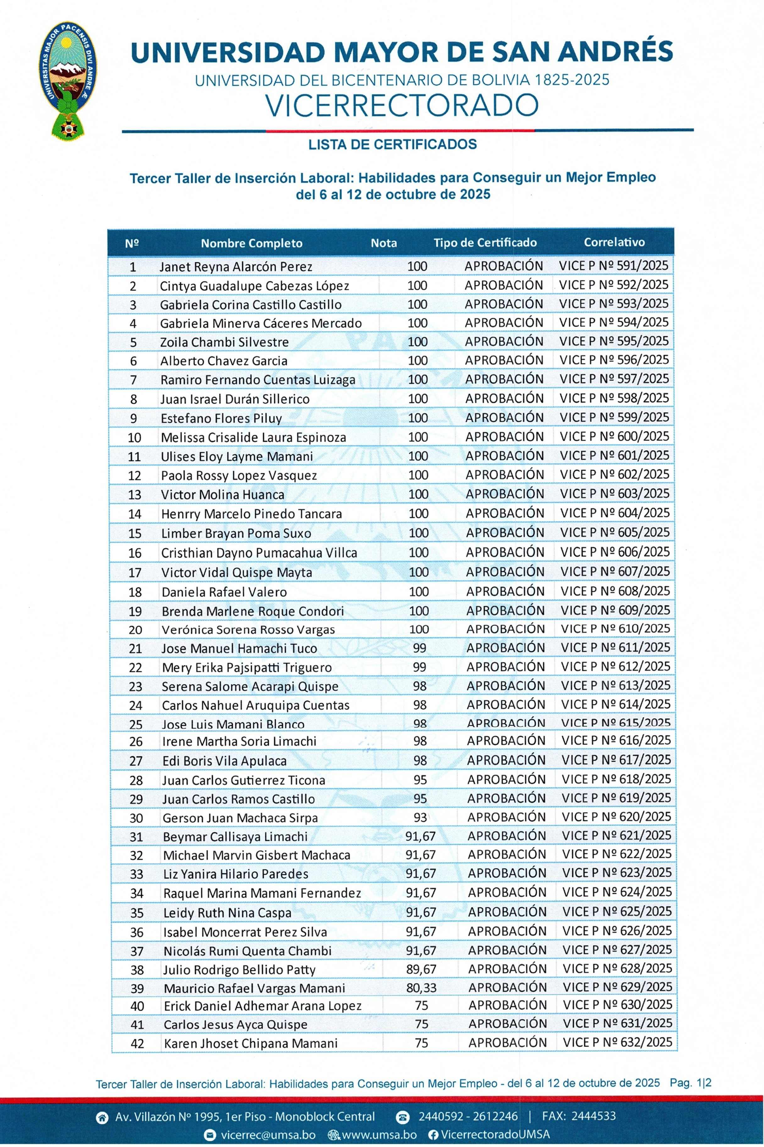 LISTA DE CERTIFICADOS