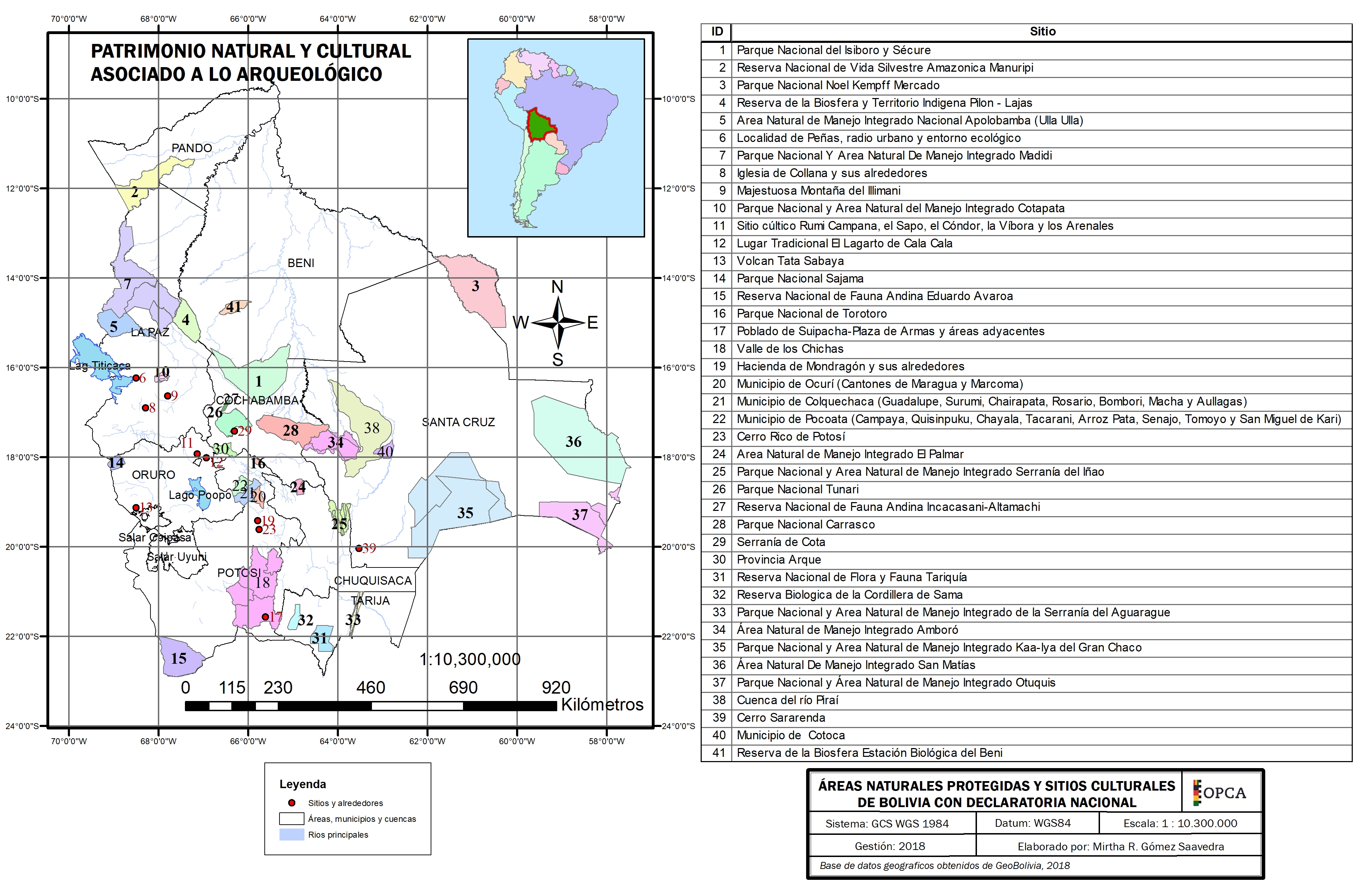 Un proyecto inicial está referido a los sitios, áreas y elementos declarados Patrimonio Cultural y Natural de Bolivia.