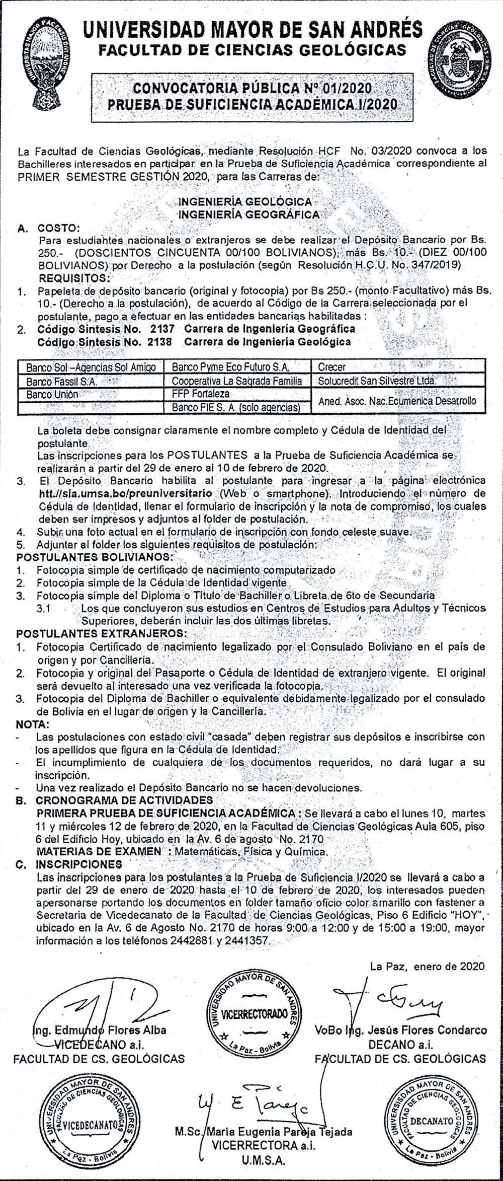 PSA - FACULTAD DE CS. GEOLÓGICAS GESTIÓN I/2020
