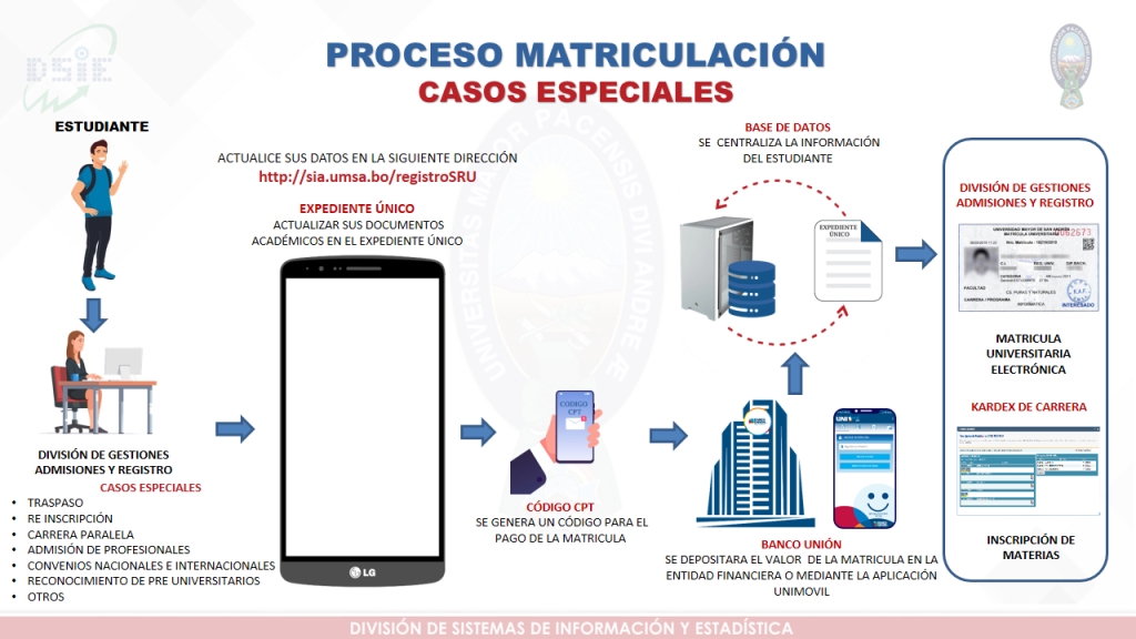 NOTA IMPORTANTE: DEBIDO A LA CRECIDA DE LA PANDEMIA COVID-19 Y POR EL BIENESTAR DE LA COMUNIDAD ESTUDIANTIL, ADMINISTRATIVA Y DOCENTE, SOLAMENTE SE ATENDERA AL INTERESAD@, QUE DEBE VENIR CON TODAS LAS MEDIDAS DE BIOSEGURIDAD (MASCARILLA, BARBIJO, ETC.), EVITAR TRAER COMPAÑÍA (HIJ@S, PADRES, ETC.).