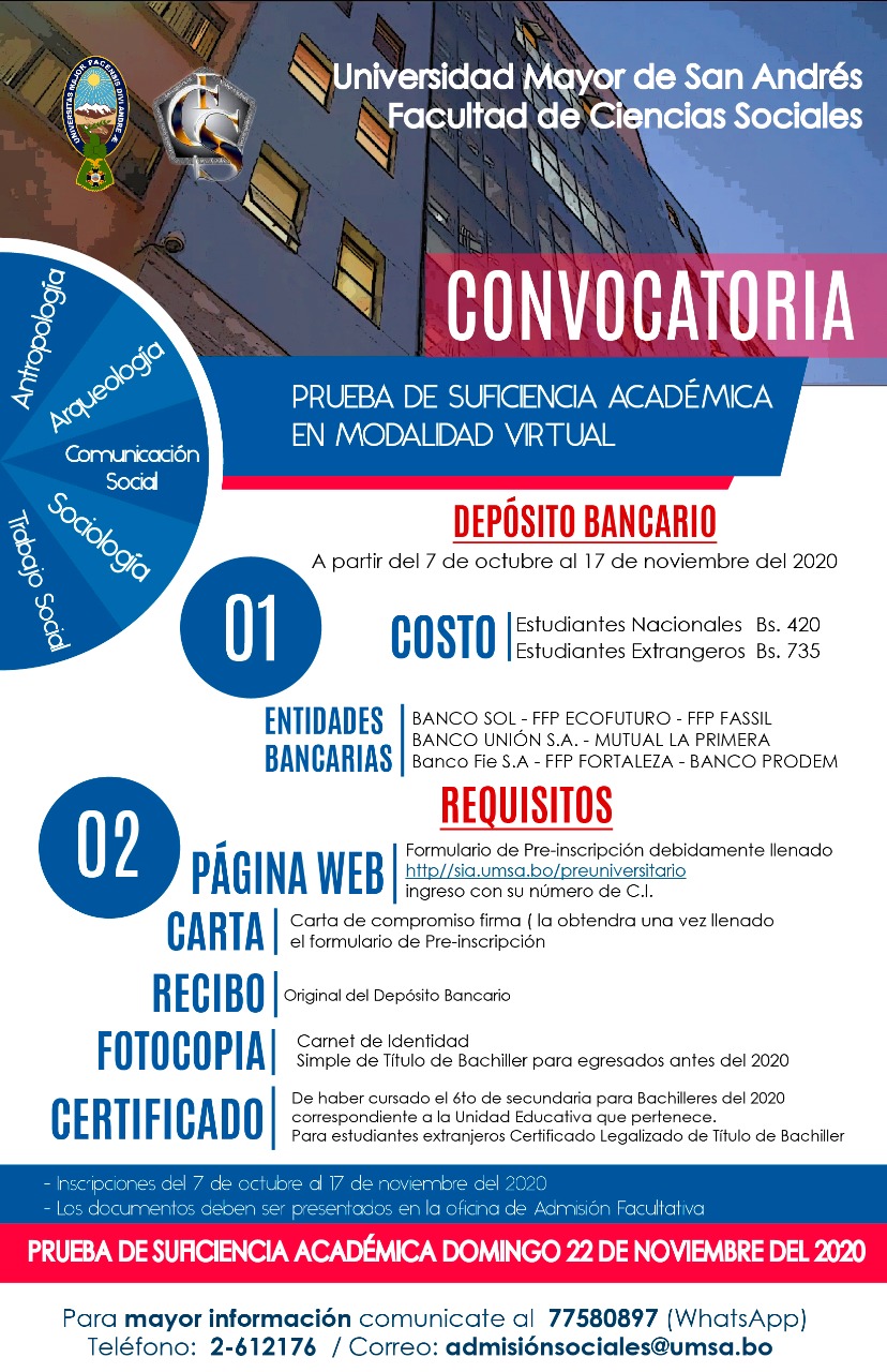 Convocatoria prueba de suficiencia académica en modalidad virtual, para las carreras de: