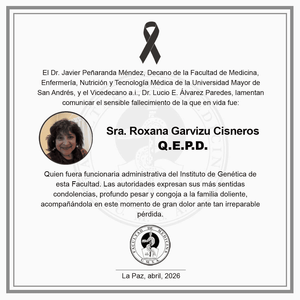 Se lamenta comunicar el fallecimiento de la Sra. Rosario Garvizu Cisneros - FMENT-UMSA