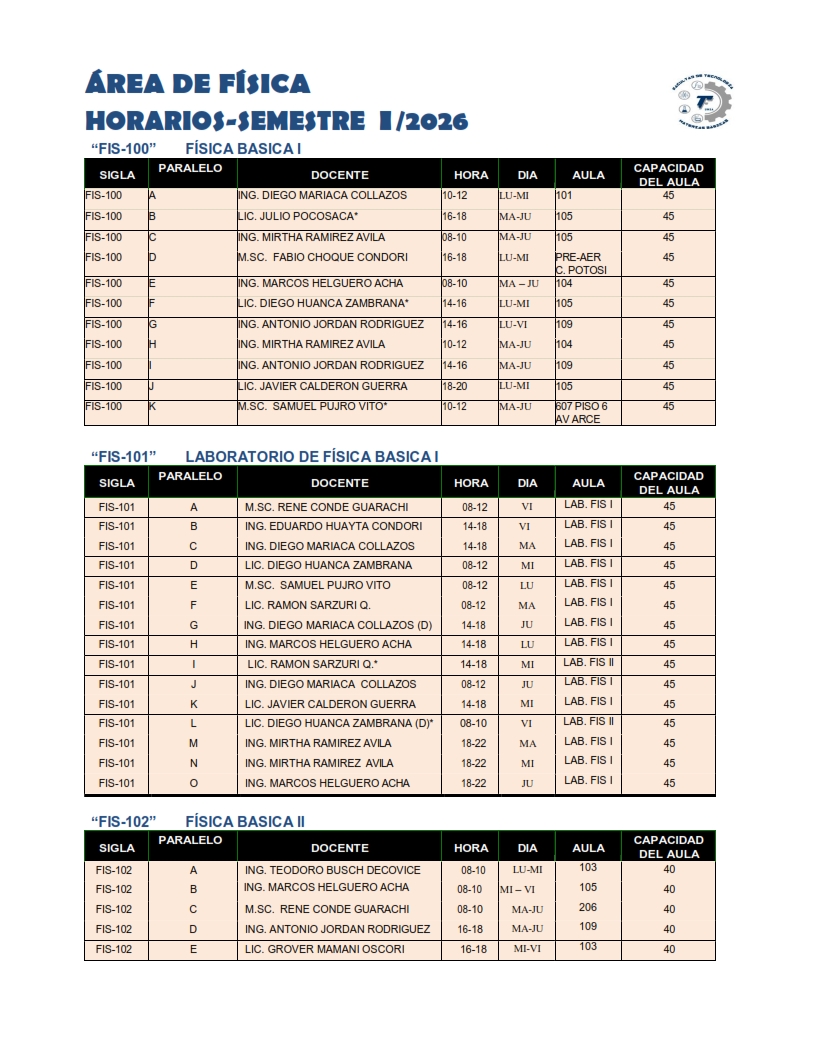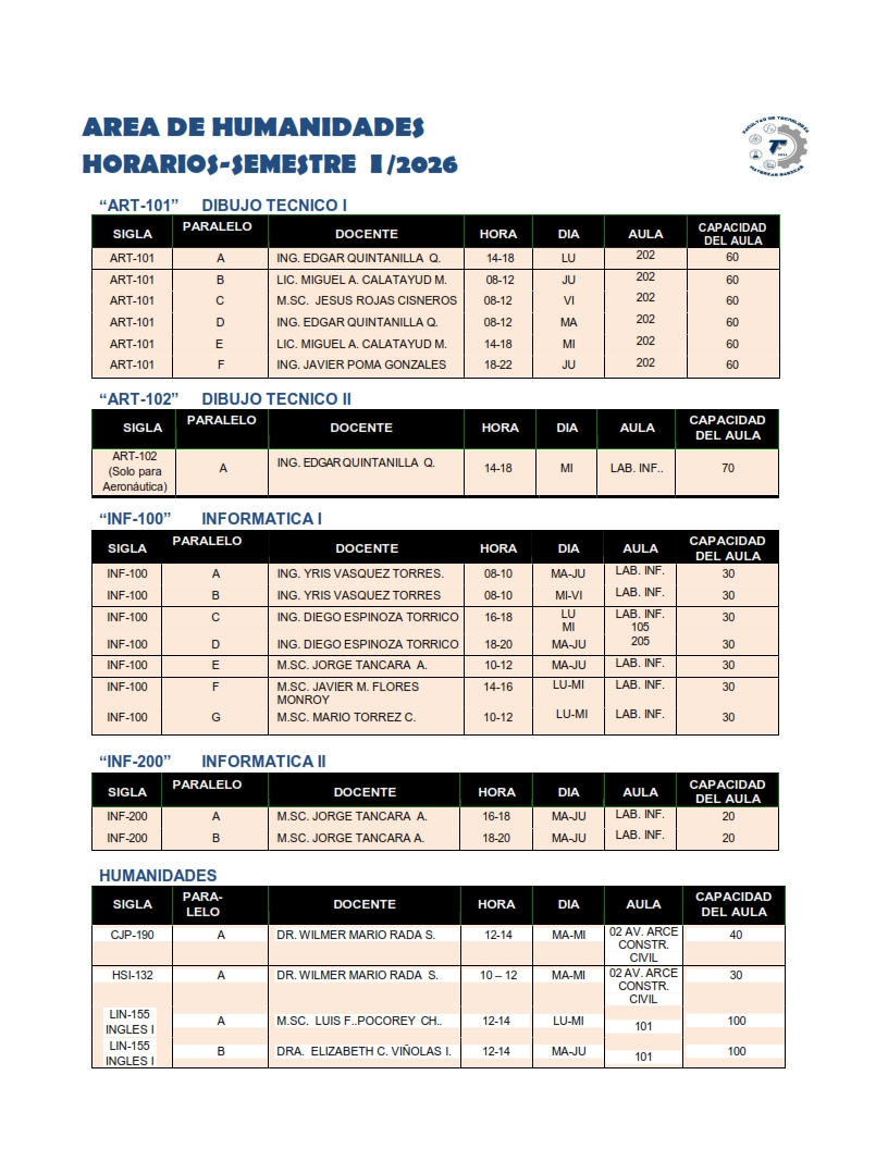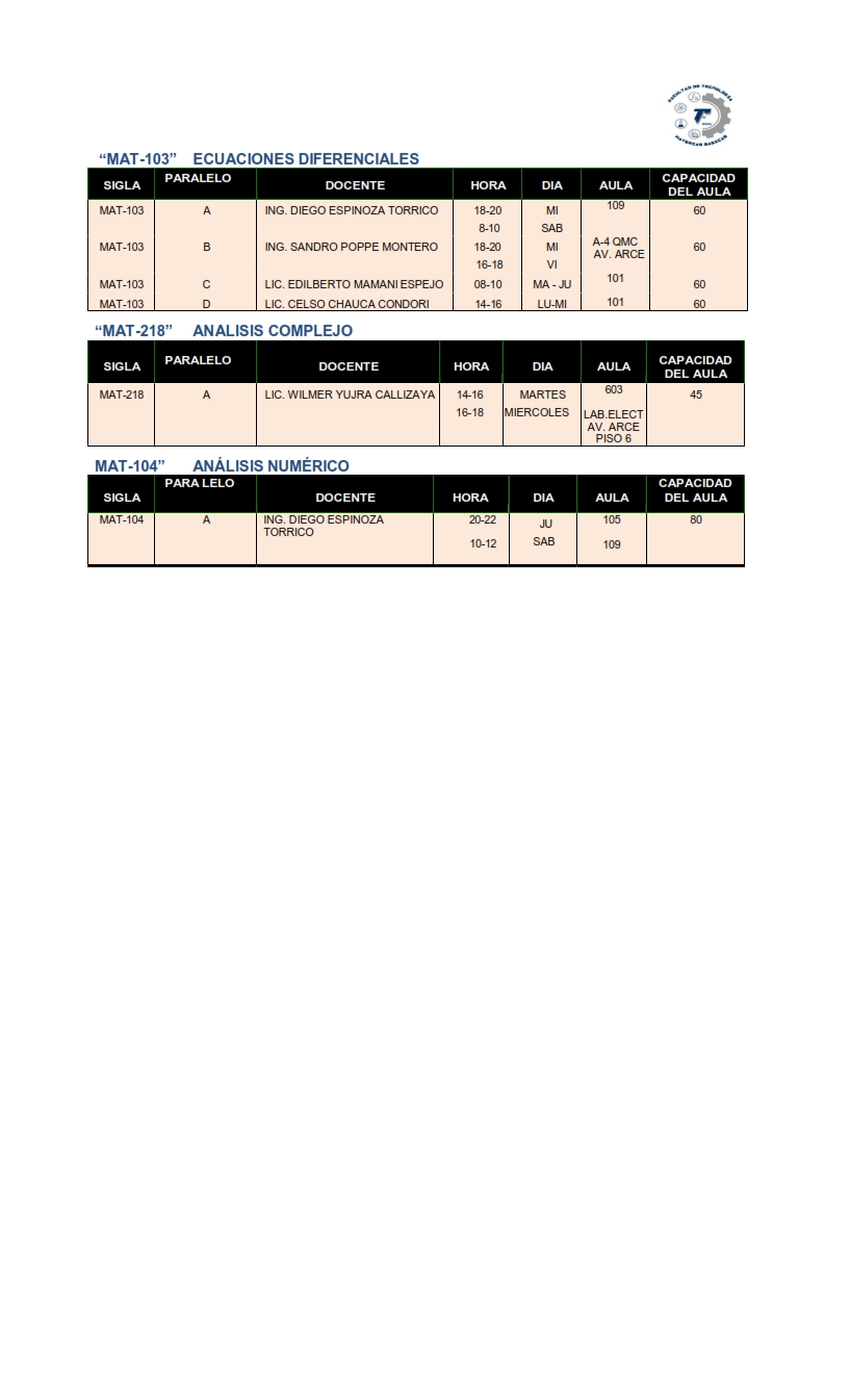 Horarios MAT-BAS - FT-UMSA