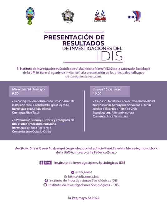 Lugar: Facultad de Ciencias Sociales de la UMSA