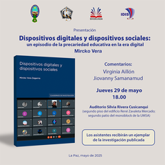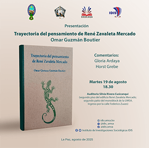 Lugar: Auditorio Silvia Rivera Cusicanqui (segundo piso del edificio René Zavaleta Mercado, monoblok de la UMSA, ingreso calle Federico Zuazo).
