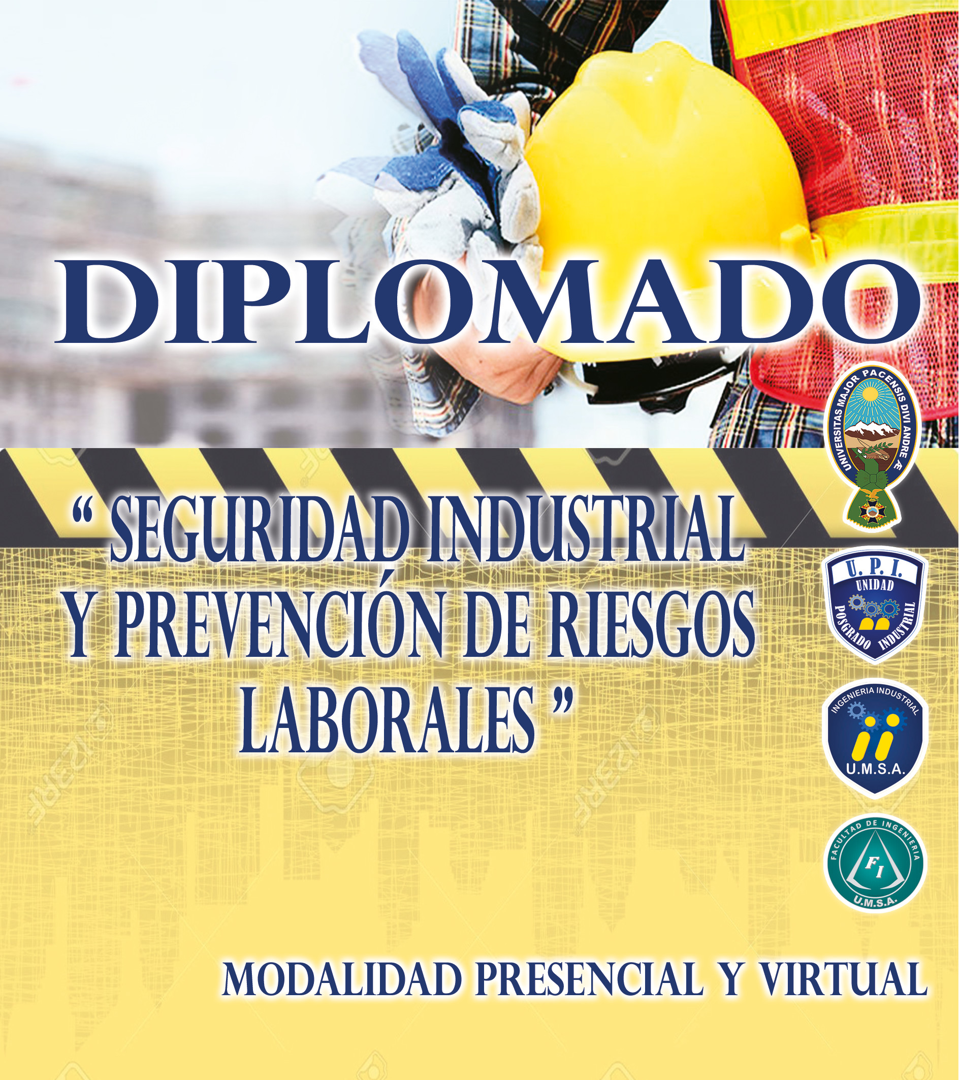 El Diplomado en Seguridad Industrial y Prevención de Riesgos Laborales es un Programa propuesto por la Carrera de Ingeniería Industrial de la Universidad Mayor de San Andrés. El presente Programa está dirigido a profesionales de todas las áreas, directivos, mandos medios y responsables del manejo de los sistemas de gestión en salud ocupacional y seguridad industrial; asimismo a estudiantes en proceso de formación. Los objetivos son transmitir conceptos y prácticas que comprende la seguridad y la prevención de riesgos laborales con la capacidad de intervenir y mejorar las condiciones de salud y confort en el ámbito laboral.