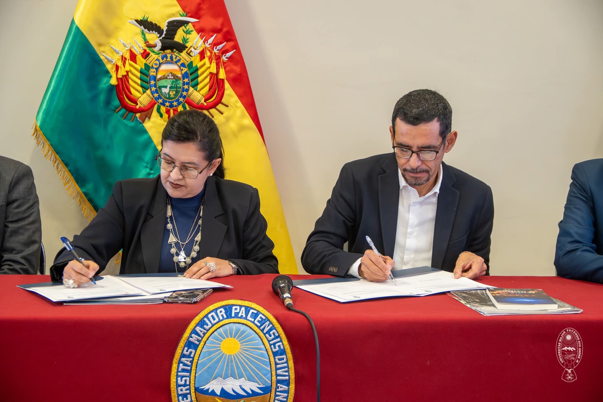 🤝 El auditorio de la Carrera de Informática de la Universidad Mayor de San Andrés (UMSA) fue el escenario del foro “Diálogo democrático + conocimiento + innovación = una suma que multiplica”. En este marco, la universidad y Solidar Suiza, con el respaldo de la Embajada de Suecia en Bolivia, suscribieron un convenio marco de cooperación para transformar el conocimiento científico en soluciones reales para el país.