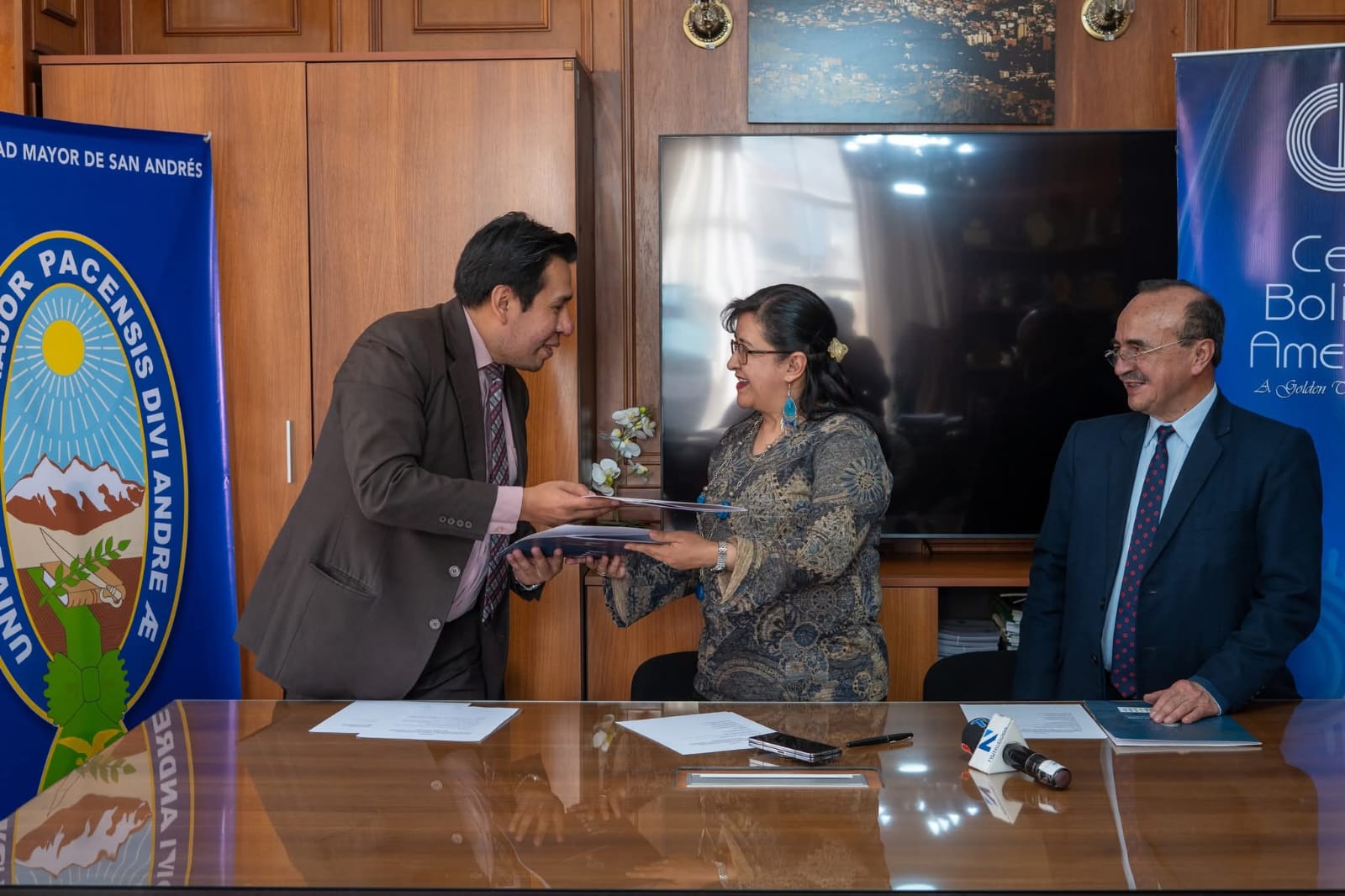La universidad y el Centro Boliviano Americano suscribieron un convenio de cinco años que otorgará descuentos exclusivos en cursos de inglés para estudiantes, docentes y administrativos, impulsando su proyección internacional.