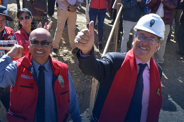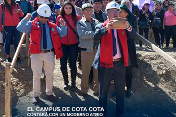 El Rector de la UMSA, M.Sc. Oscar Heredia Vargas y el Departamento de Infraestructura, dio inicio oficial a la construcción del atrio y vías de circulación en el campus universitario de Cota Cota, una obra estrella de la gestión rectoral que abarca 5.000 m2, contará con espacios para vías vehiculares, aceras, una ciclovía y además, albergará a más de 1.000 personas simultáneamente, y permitirá realizar actividades de intercambio social y encuentro universitario.
