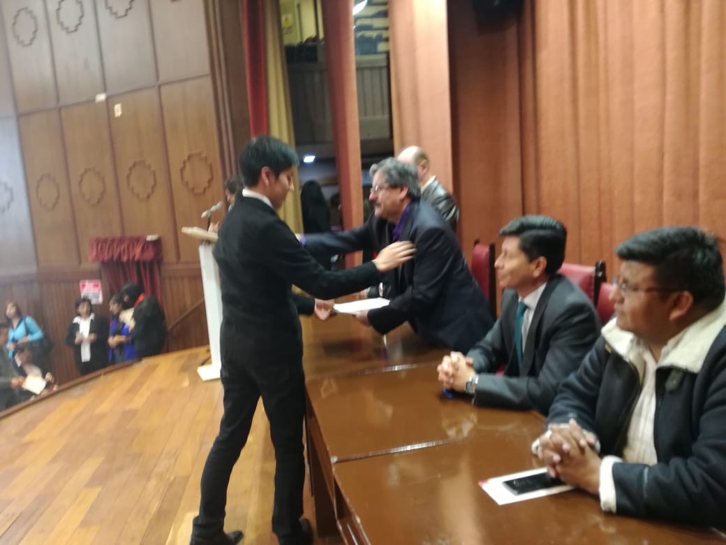 El día viernes 20 de septiembre del 2019 en el paraninfo universitario se realizó el Acto de premiación a los mejores estudiantes de la Universidad Mayor de San Andrés de la gestión 2018 otorgando la medalla y el certificado a los mejores estudiantes de nuestra Universidad Mayor de San Andrés.