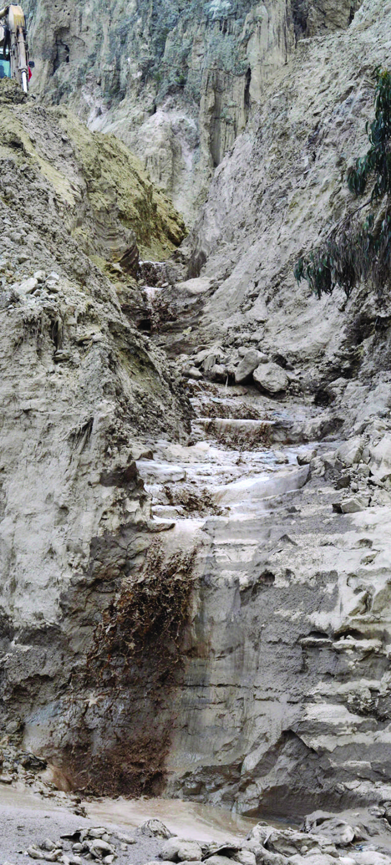 “Ese lunes ha llovido y claro que el agua ha bajado, pero eso no es nada en comparación a cuando llueve fuerte. Cuando graniza esa quebrada es grave, se hace una catarata que arrastra todo, no es solo agua, sino una masa, da miedo. Una de esas precipitaciones puede llevarse dique y plataforma”, dijo un vecino.