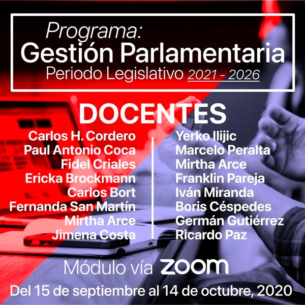 La carrera de Ciencias Políticas y Gestión Pública y el Instituto de Investigaciones en Ciencia Política de la Universidad Mayor de San Andrés (UMSA) organizan un programa de Gestión Parlamentaria, dirigido a los candidatos a senadores y diputados que formen parte de la Asamblea Legislativa Plurinacional (ALP) las gestiones 2021-2026.