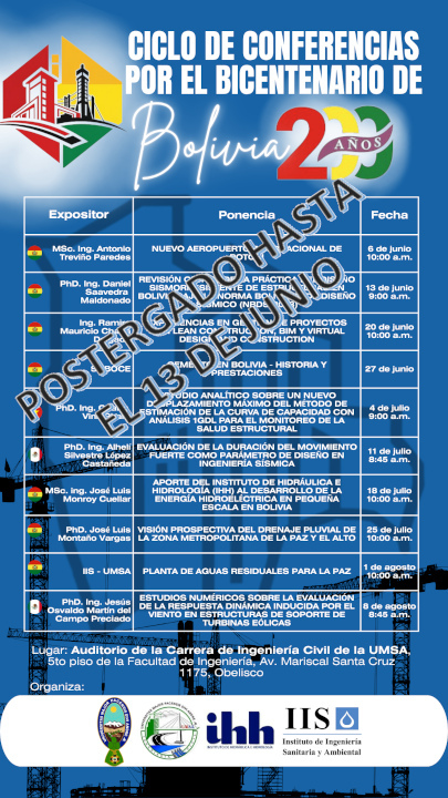 CRONOGRAMA DEL CICLO DE CONFERENCIAS POR EL BICENTENARIO DE BOLIVIA - 200 AÑOS - Ingeniería Civil