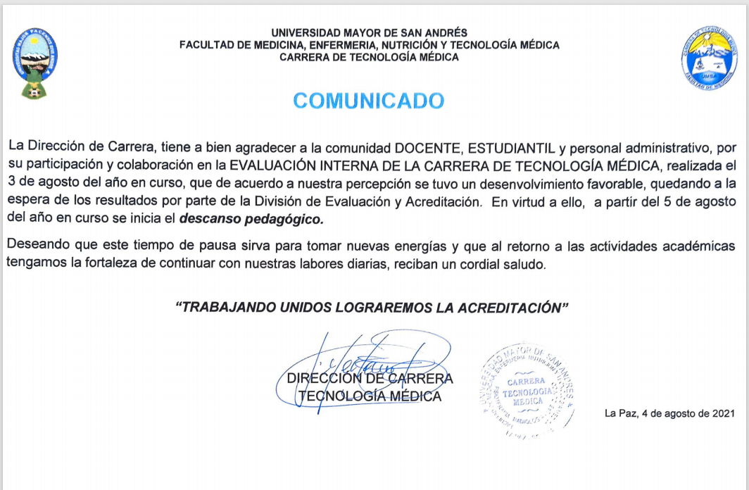 DESCANSO PEDAGÓGICO - CARRERA DE TECNOLOGÍA MEDICA