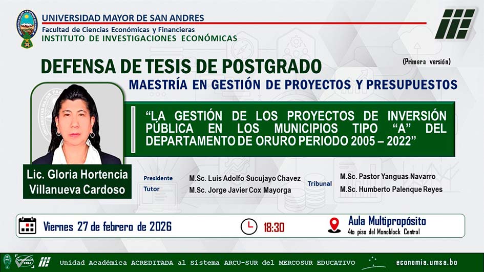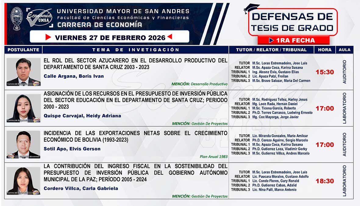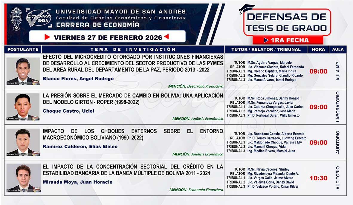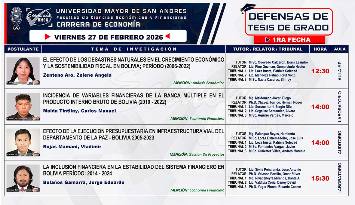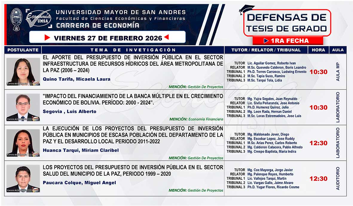 📍ACTO PÚBLICO DE DEFENSAS DE TESIS DE GRADO (1ra fecha 2026) 📅 VIERNES 27 DE FEBRERO 2026