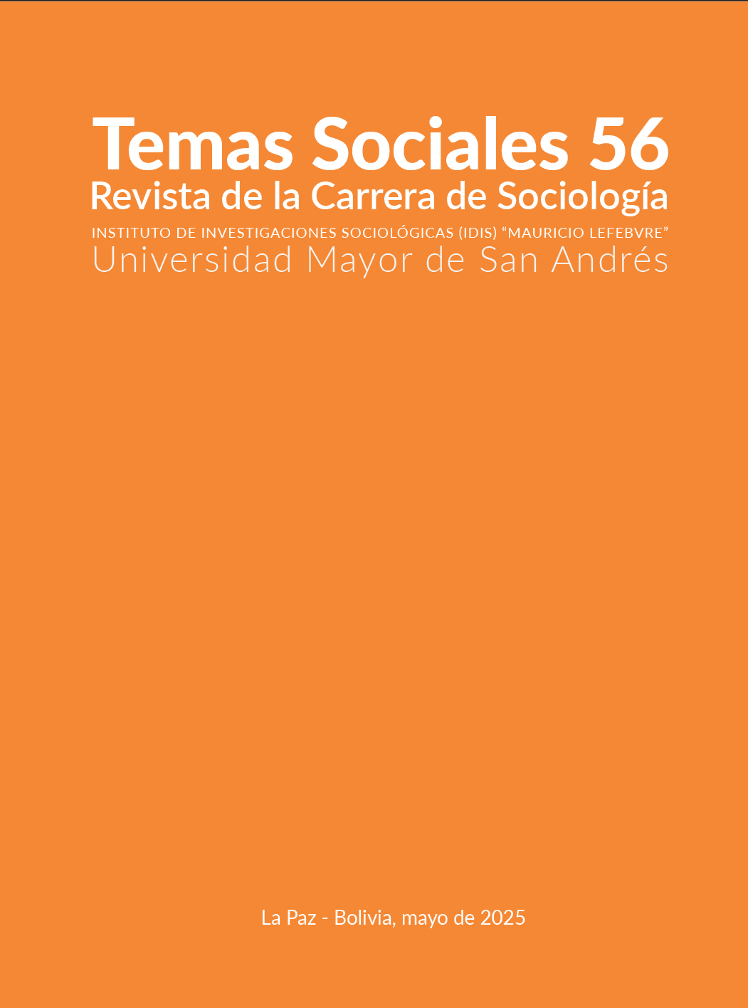 La revista Temas Sociales publica artículos que son resultado de investigaciones concluidas en el campo de las ciencias sociales, así como de notas de investigación, entrevistas y reseñas, entre otros. Este número presenta un artículo sobre la urbanización, multi-ocupación y clases sociales en una ciudad amazónica minera; uno sobre un centro de acogida en Tarija, uno sobre la desigualdad en torno a las mediciones sobre discapacidad en Iberoamérica y un análisis bibliométrico de políticas públicas para adultos mayores. En la la sección de Aportes se publican artículos sobre Alain Touraine en la sociología boliviana, la burocracia boliviana vista desde la Teoría del Actor-Red, la representación proporcional en la reforma electoral boliviana y, por último, el campo de las derechas bolivianas en el ciclo político hegemónico del MAS-IPSP. Dos reseñas cierran la revista.